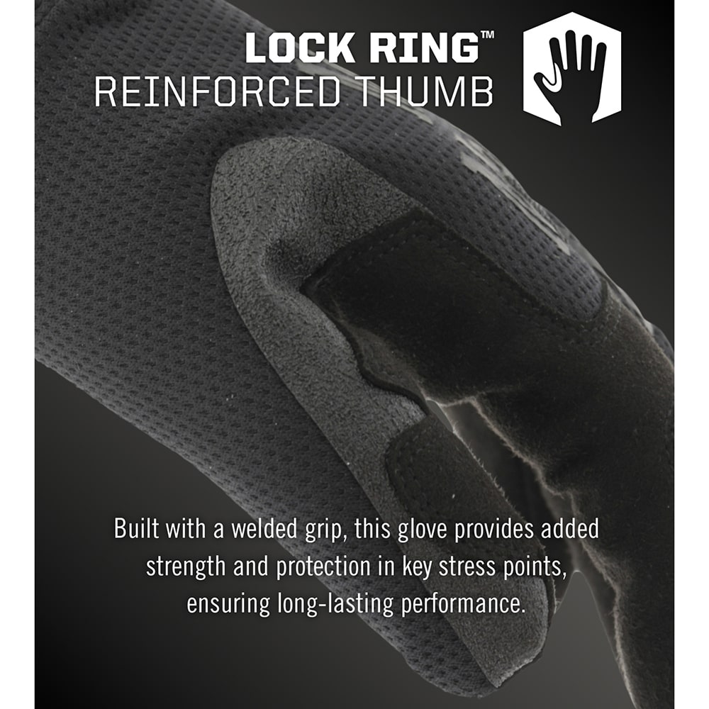 Накладка для большого пальца Lock Ring™ охватывает область опоры большого пальца, подверженную износу, повышая прочность в зоне повышенного износа и уменьшая риск повреждения швов.